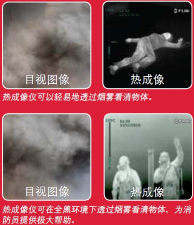 HF系列所有型号均可以在烟雾弥漫的房间里透过烟雾寻找人员。专业型均配备“融合”彩色调色板。